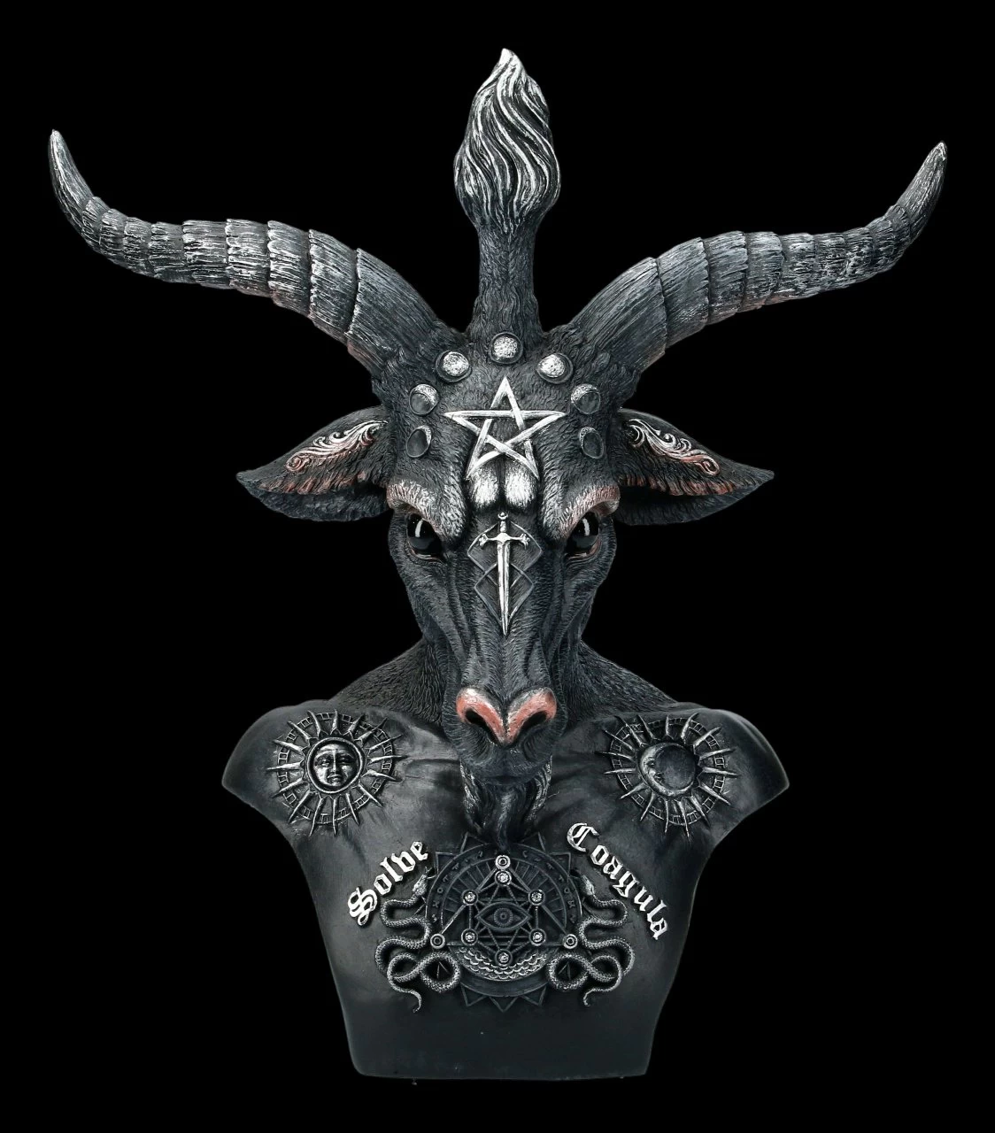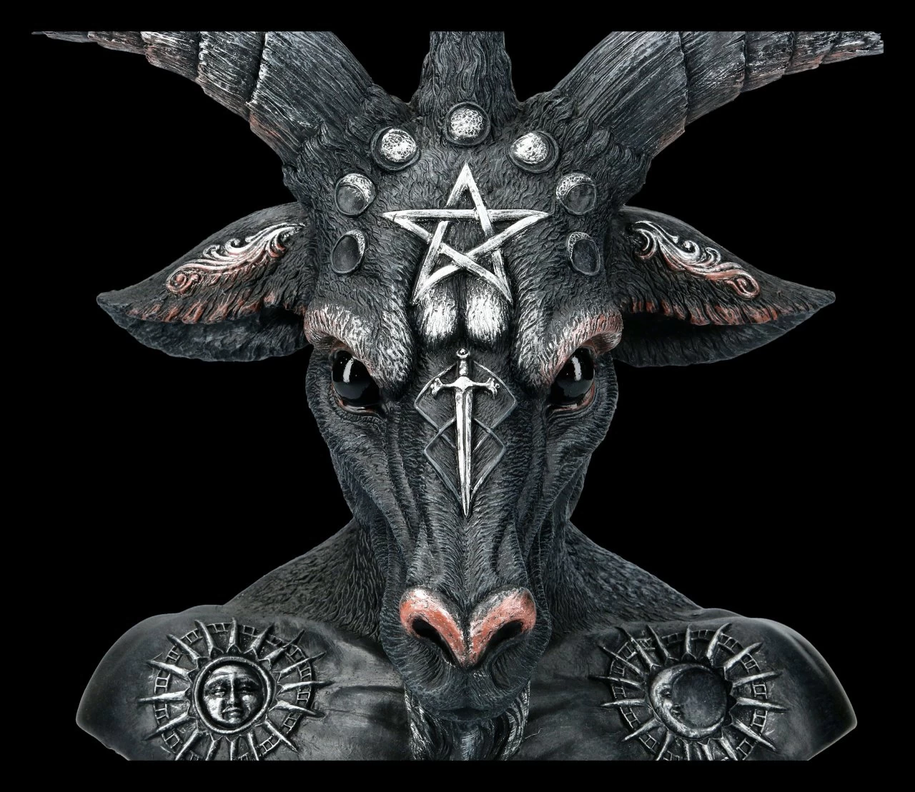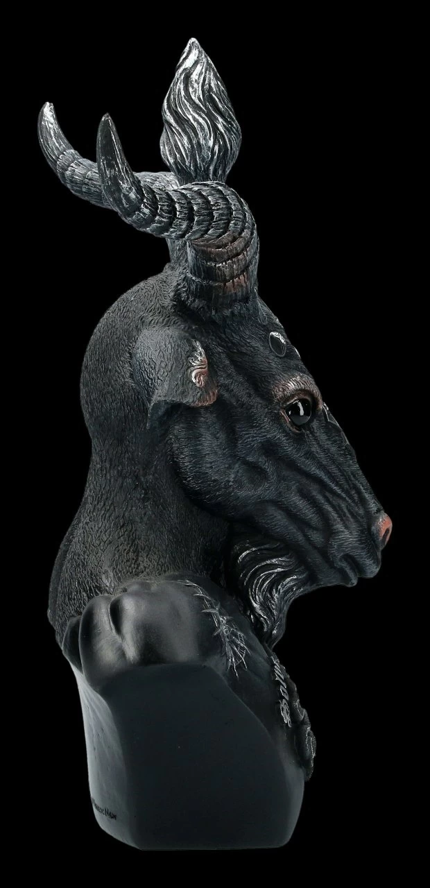 Düster blickt der teuflische Dämon den Betrachter an. Seine sehr detaillierten Zeichnungen zeigen die ausgewogene Kombination von Gegensätzen, die er in sich vereint: Gut und Böse, Tag und Nacht, sowie Dämonisches und Menschliches. Die beeindruckende Baphomet Figur von Nemesis Now aus handbemaltem und mit Schmucksteinen verzierten Kunststein (Polyresin) ist 33,5 cm hoch, 30,5 cm breit und 14,5 cm tief. Die große Baphomet-Büste wird sicher alle Blicke Ihrer Besucher auf sich ziehen.