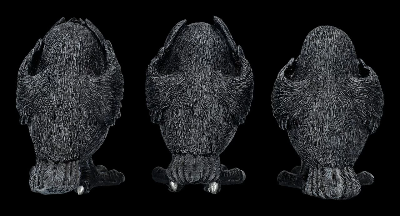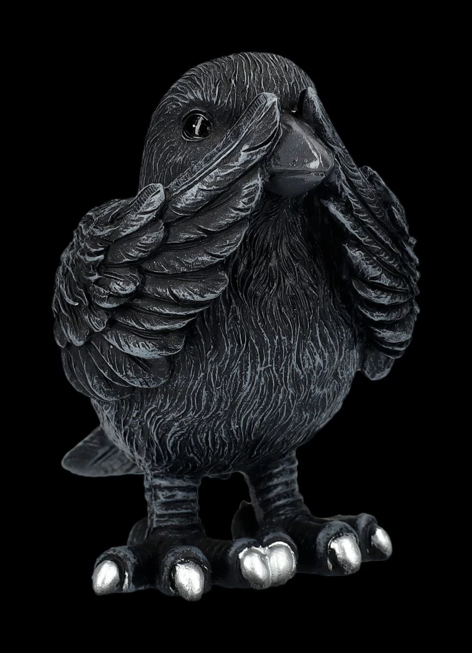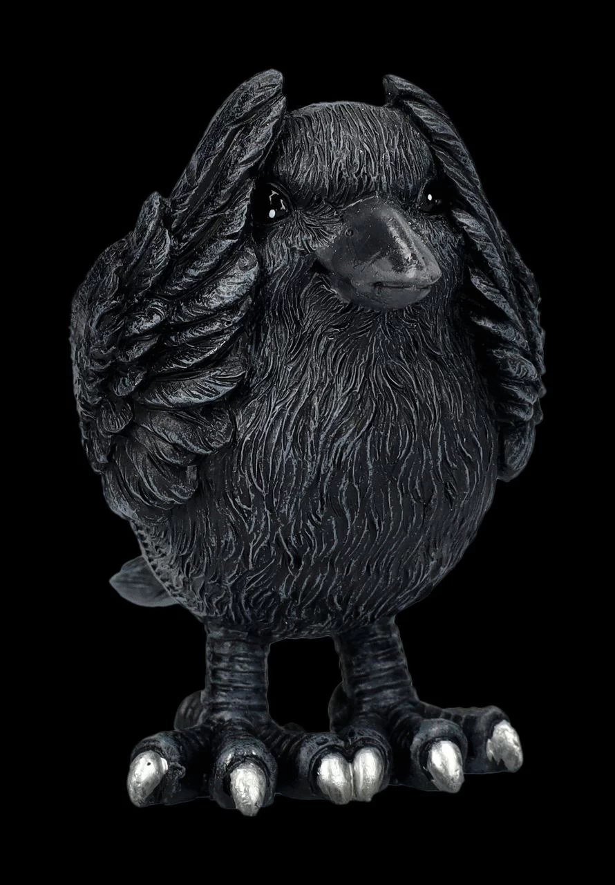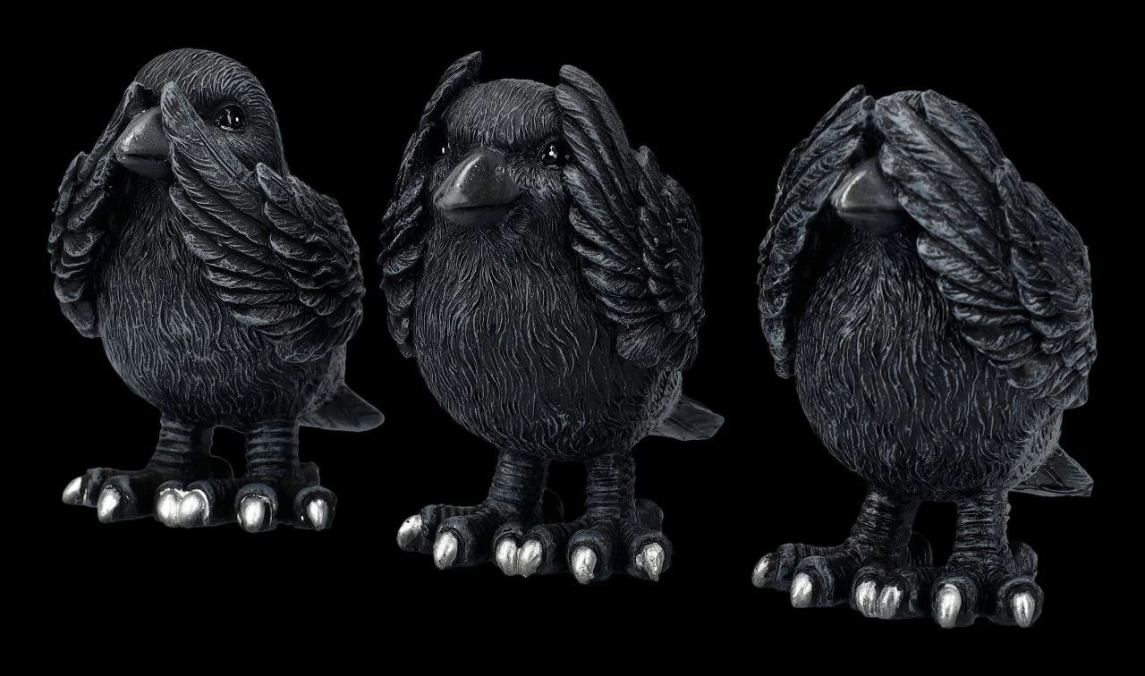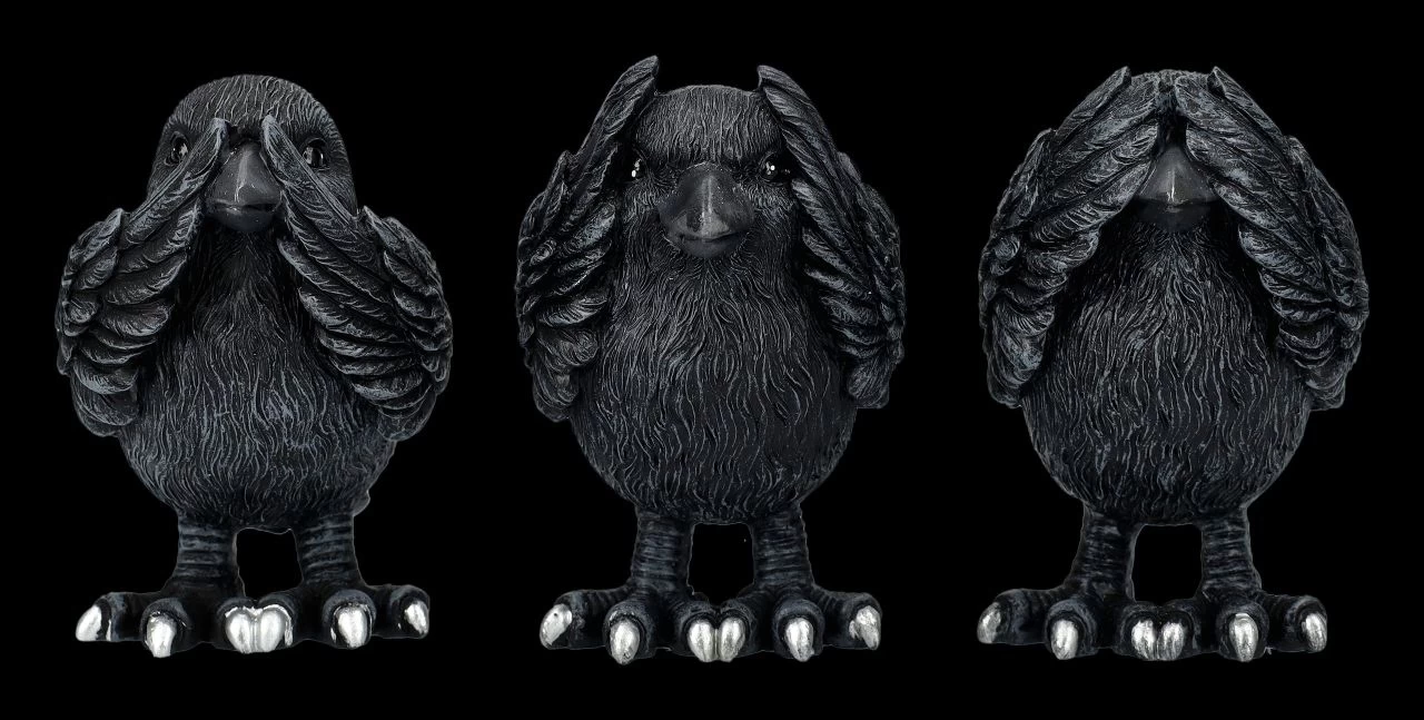 Raben krächzen zwar laut und nicht unbedingt harmonisch, aber jeder weiß doch, dass sie absolut schlaue Tiere sind. Und so zeigen die drei witzigen Gesellen deutlich, dass sie manchmal nichts Böses hören, sehen und auch nicht krächzen wollen. Die lustigen schwarzen Raben aus handbemaltem Kunststein (Polyresin) kommen im 3er-Set. Sie sind 8,5 – 9 cm hoch, 5,5 – 6 cm breit und 8 – 9 cm tief. Die drei schwarzen Raben sind eine witzige Deko und ein vielsagendes Geschenk.
