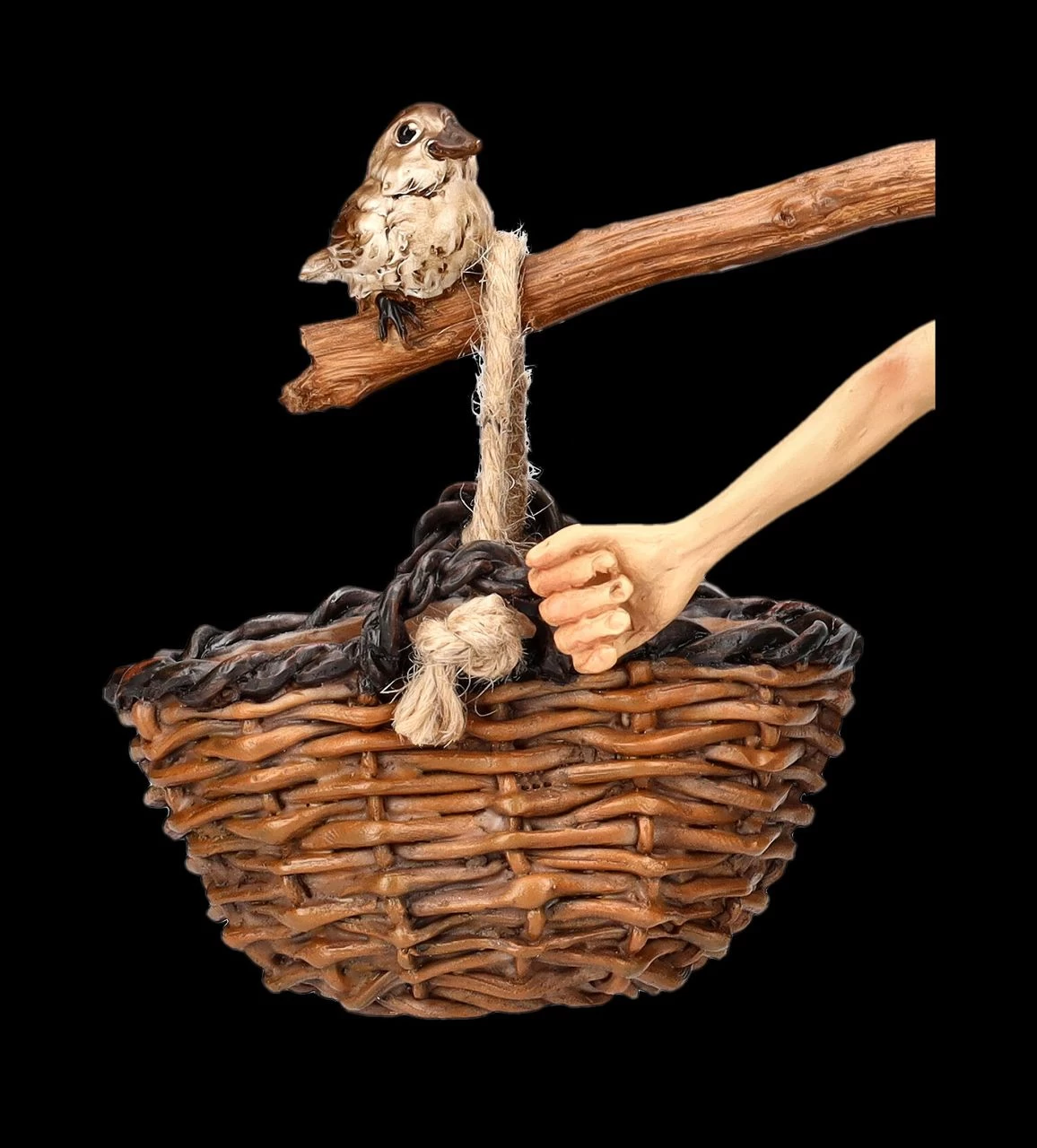 „Kannst du dich nicht auf die andere Seite setzen, so kann ich die Balance ja nicht halten“… Der Pixie Kobold muss zum Markt und trägt schon mühevoll die beiden leeren Körbe, die er über eine Stange gehängt hat und auf seiner Schulter balanciert. Und nun setzt sich ein frecher kleiner Vogel einfach auf eine Seite der Stange, was den Kobold richtig frustriert, wie man leicht an seinem Gesichtsausdruck erkennen kann. Die große Figur des lustigen Pixie Kobolds aus liebevoll handbemaltem Kunststein (Polyresin) ist 23 cm hoch, 30 cm breit und 10 cm tief. Jeder Pixie-Sammler wird begeistert sein, wenn er diesen lustigen Kobold, der mühevoll versucht Balance zu halten, als Geschenk bekommt. Übrigens: Sammler finden in unserem Shop weitere lustige Pixie Kobolde, die sie begeistern werden.