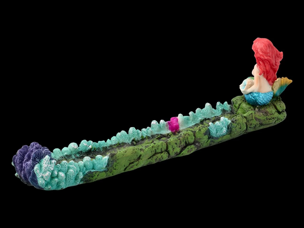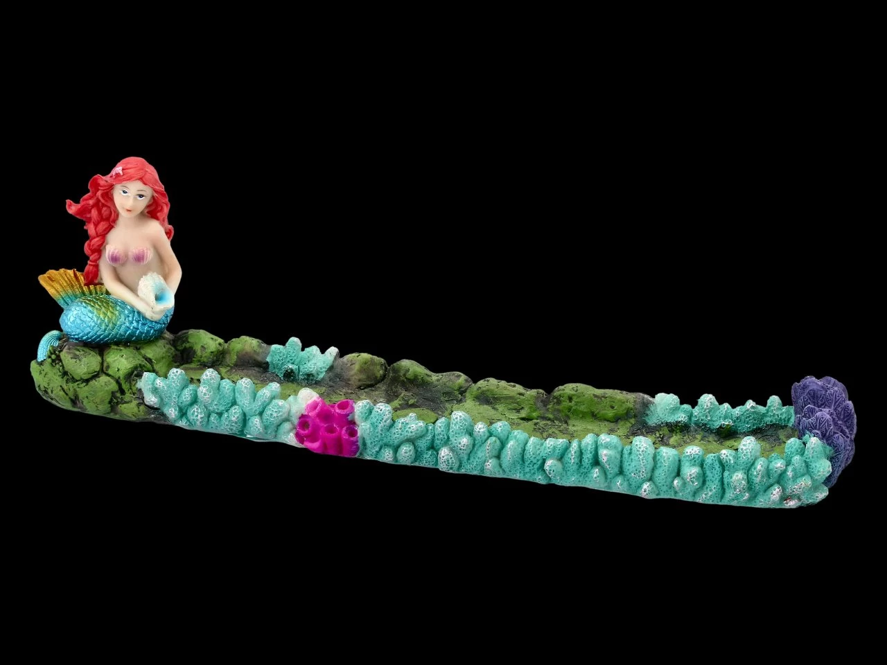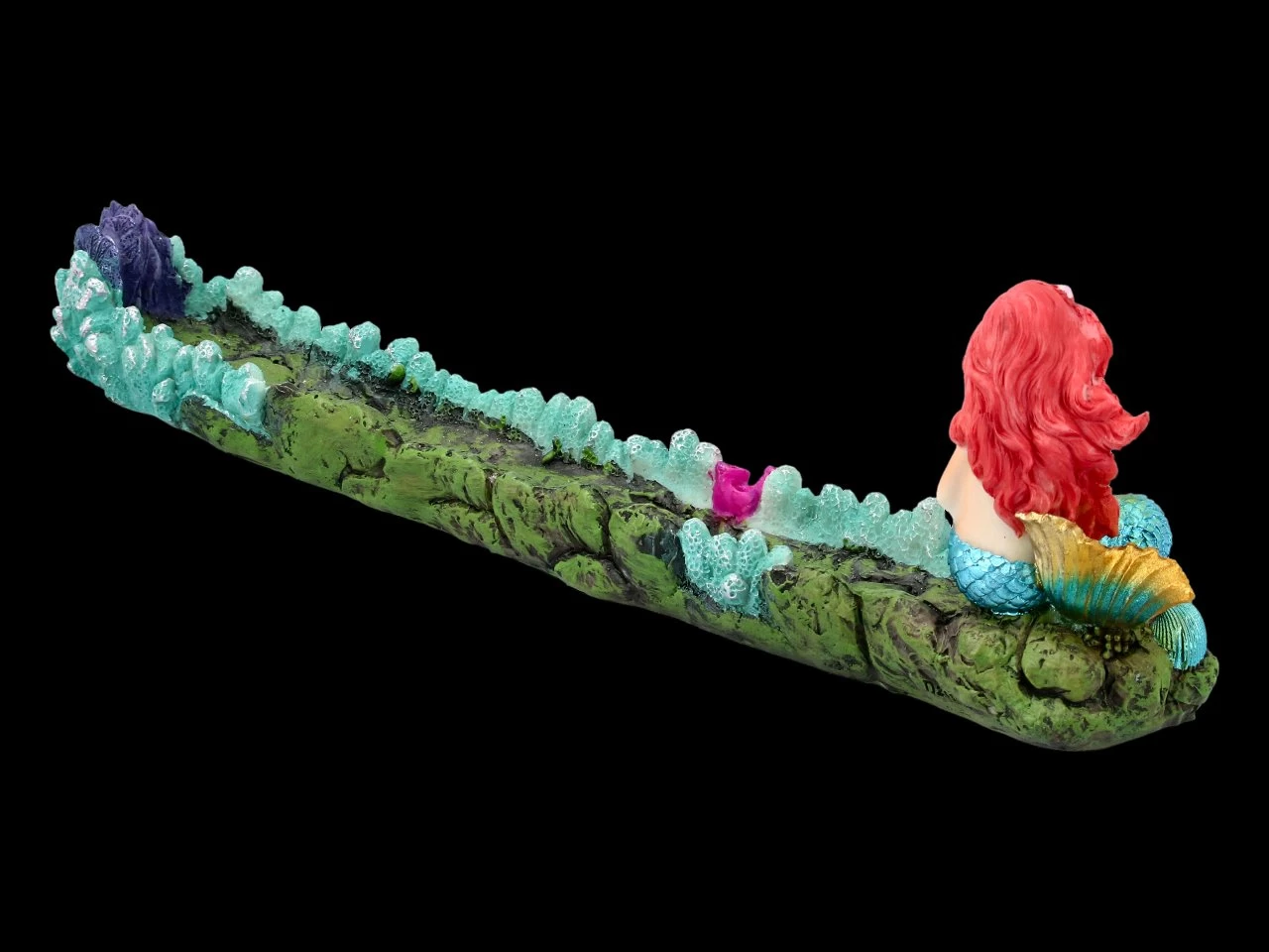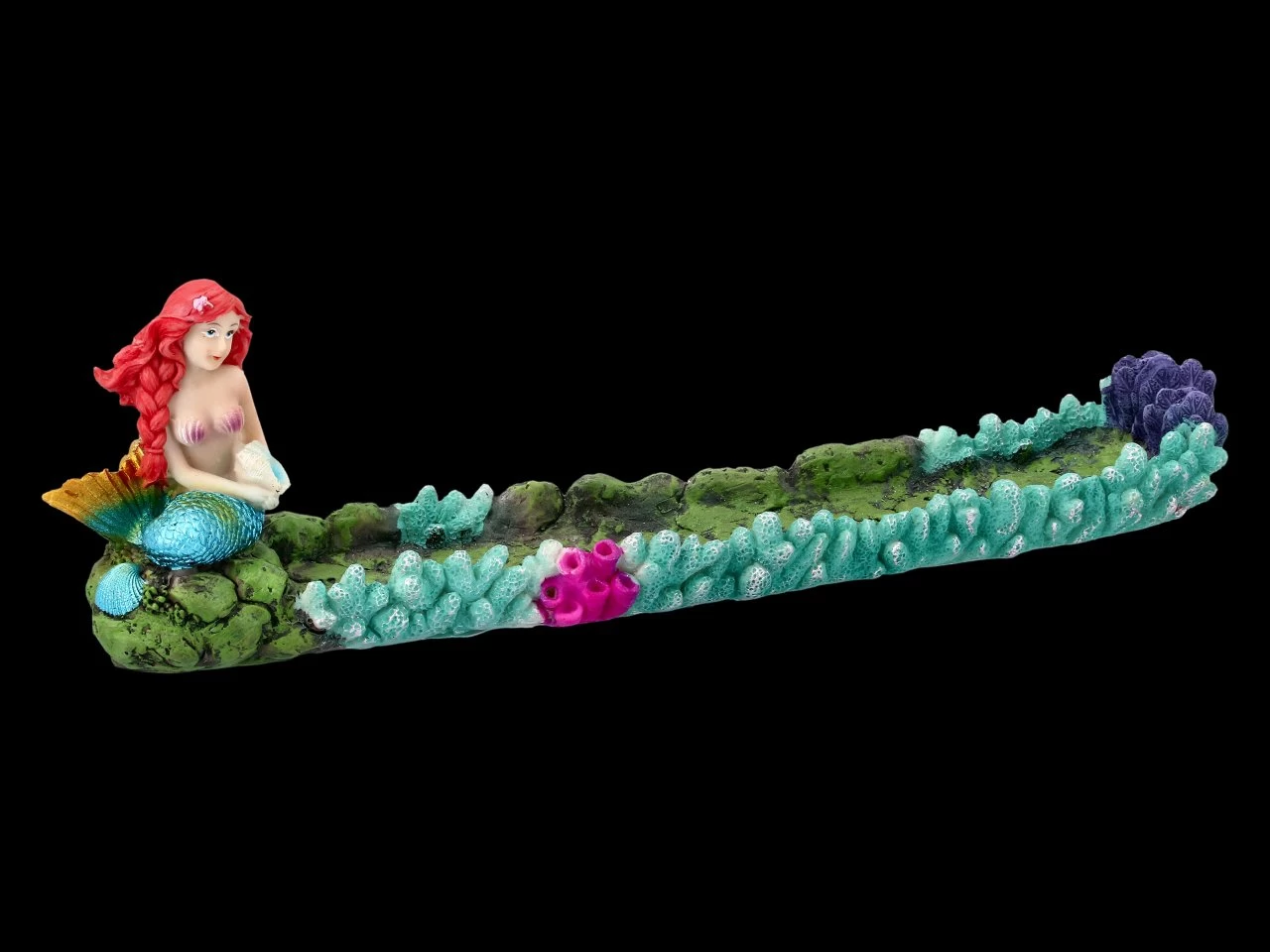 Eine wunderschöne Meerjungfrau hält glücklich ein Räucherstäbchen. Was oder wen möchte sie wohl angeln? Zusammen mit einem wohlriechenden Duftstäbchen schenkt der Räucherstäbchenhalter aus hochwertigem Kunststein (Polyresin) Ihrer Wohnung eine maritime Atmosphäre. Räucherstäbchen sind nicht in der Lieferung enthalten, es gibt jedoch eine große Auswahl in unserem Shop.