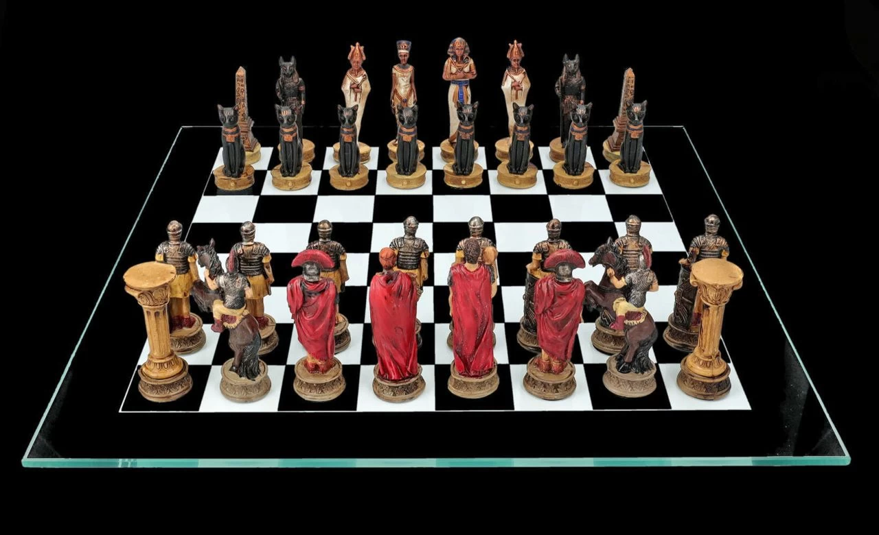 Mach die Geschichte lebendig: Mit dem handbemalten Schachspiel Ägypten vs. Rom