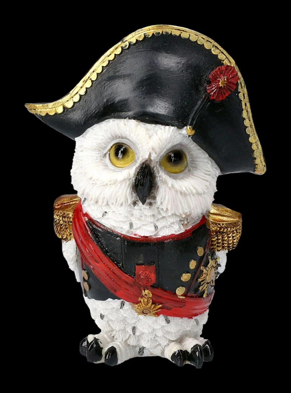 Nur verkleidet, oder geht tatsächlich Napoleon mit einem seiner adeligen Staatsminister auf ein Fest? Die gefiederten Adeligen als putziges Schneeeulen Figuren Set sind ein lustiges Geschenk für alle Eulen-Fans. Das Set ist liebevoll und sehr detailreich aus handbemaltem Kunststein (Polyresin) gefertigt. Die witzigen Eulen sind je 13 cm hoch, je 9,5 cm breit und je 8 cm tief und eine fantasievolle Deko.
