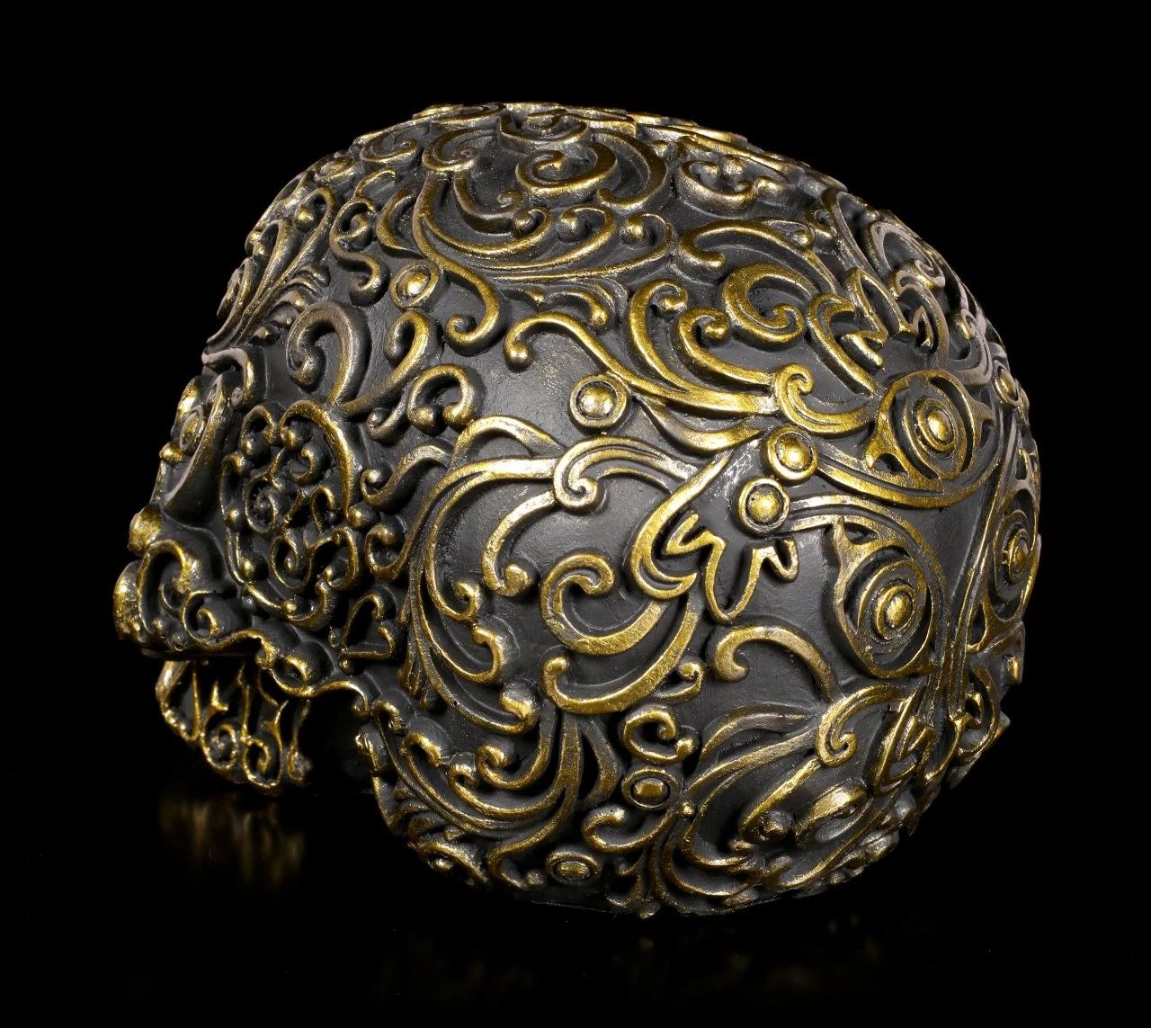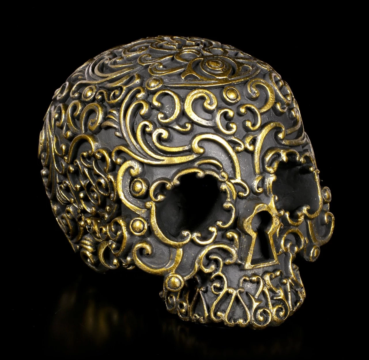 Schwarzer Totenschädel mit goldenen Ornamenten