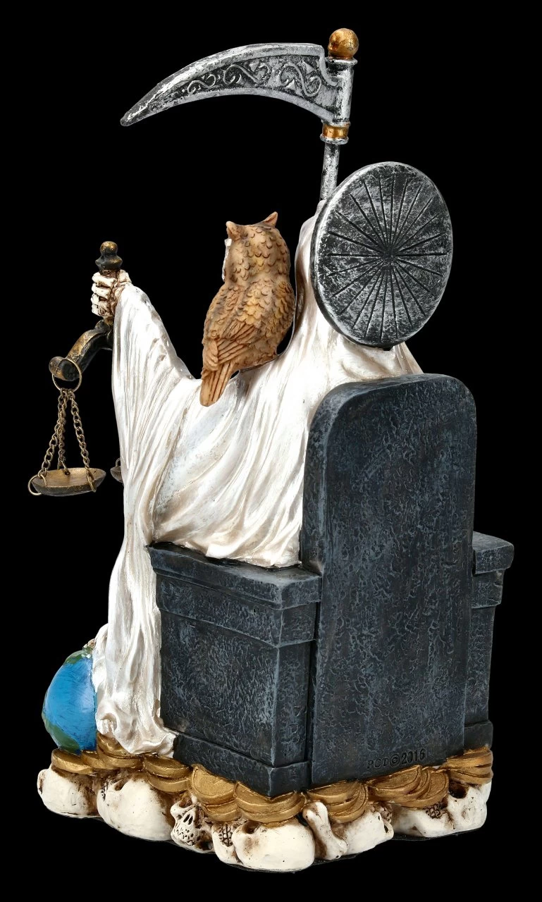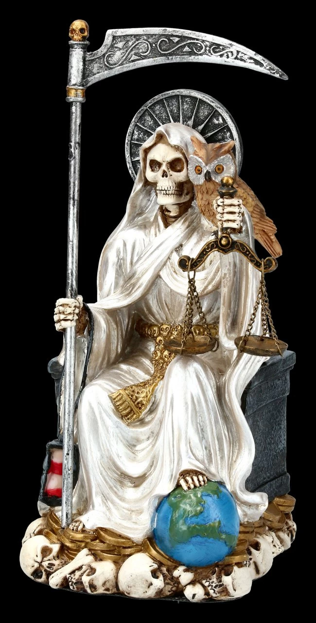 Vor allem in Mittel- und Lateinamerika wird der Heiliger Tod als Santa Muerte gefeiert und auch um Liebe, Schutz und Glück angerufen. Die auf einem Thron sitzende Santa Muerte sieht durch ihr weißes Gewand besonders edel aus. Diese handbemalte Santa Muerte ist ein schöner Schutzpatron für Zuhause.