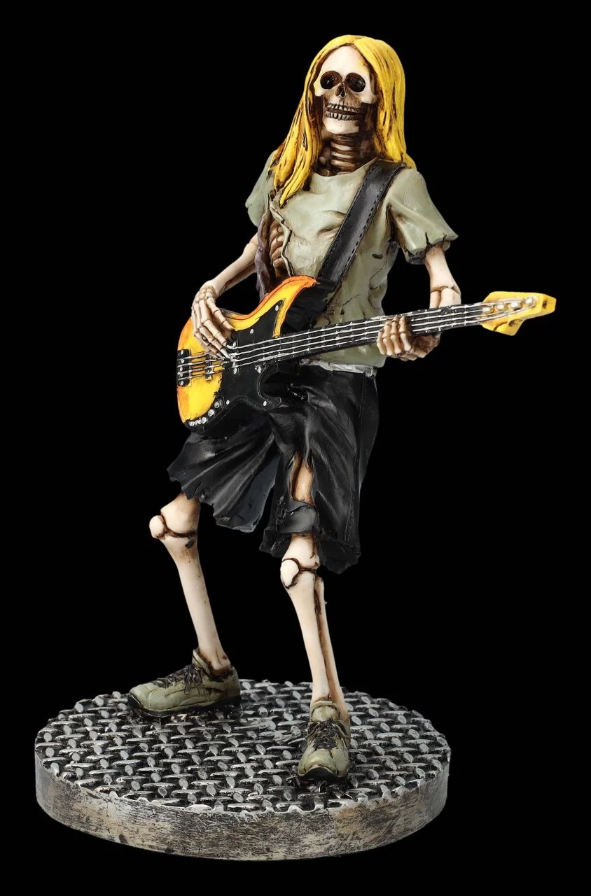 Wer zur Hölle sagt, dass es mal zu Ende geht – Music forever ist die Devise! Wenn der Bassist allerdings mal anfängt, seine langen blonden Haare zu schütteln, wird es kritisch, denn bei genauem Hinsehen merkt man, dass er sein Solo in der Skelettband spielt. Die coole Skelettfigur eines Bassisten wurde detailreich aus sorgfältig handbemaltem Kunststein (Polyresin) geschaffen. Mit der Höhe von 19 cm, der Breite von 14 cm und der Tiefe von 10,5 cm ist dieses außergewöhnliche Bandmitglied nicht nur dekorativ und gehört in jeden Übungsraum, es ist auch als Maskottchen das perfekte Geschenk für einen Bassisten.