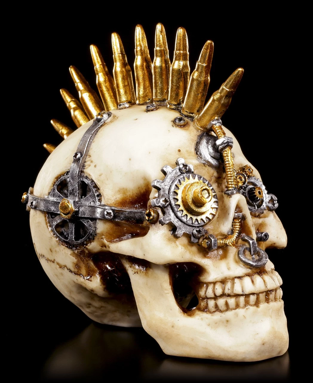 Wollen Sie auch das Besondere – etwas das nicht Jeder hat? Dann ist dieser Steampunk Totenkopf mit dem Namen Gears of War genau das Richtige für Sie. Der klassische Totenkopf verbirgt sich unter all den Schrauben, Zahnrädern und Patronen – er ist einfach etwas ganz Besonderes.