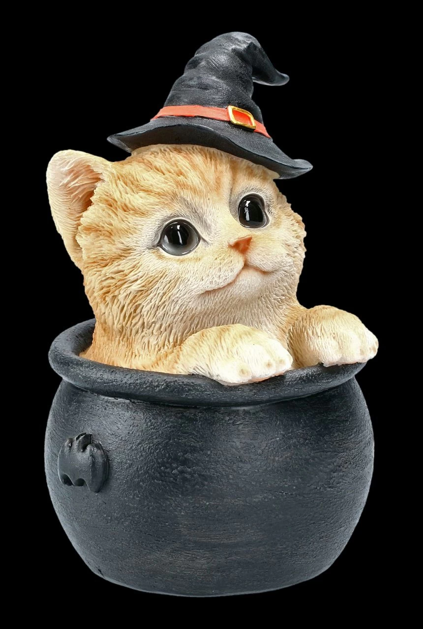 Niedliche Katzenfigur mit Hexenhut