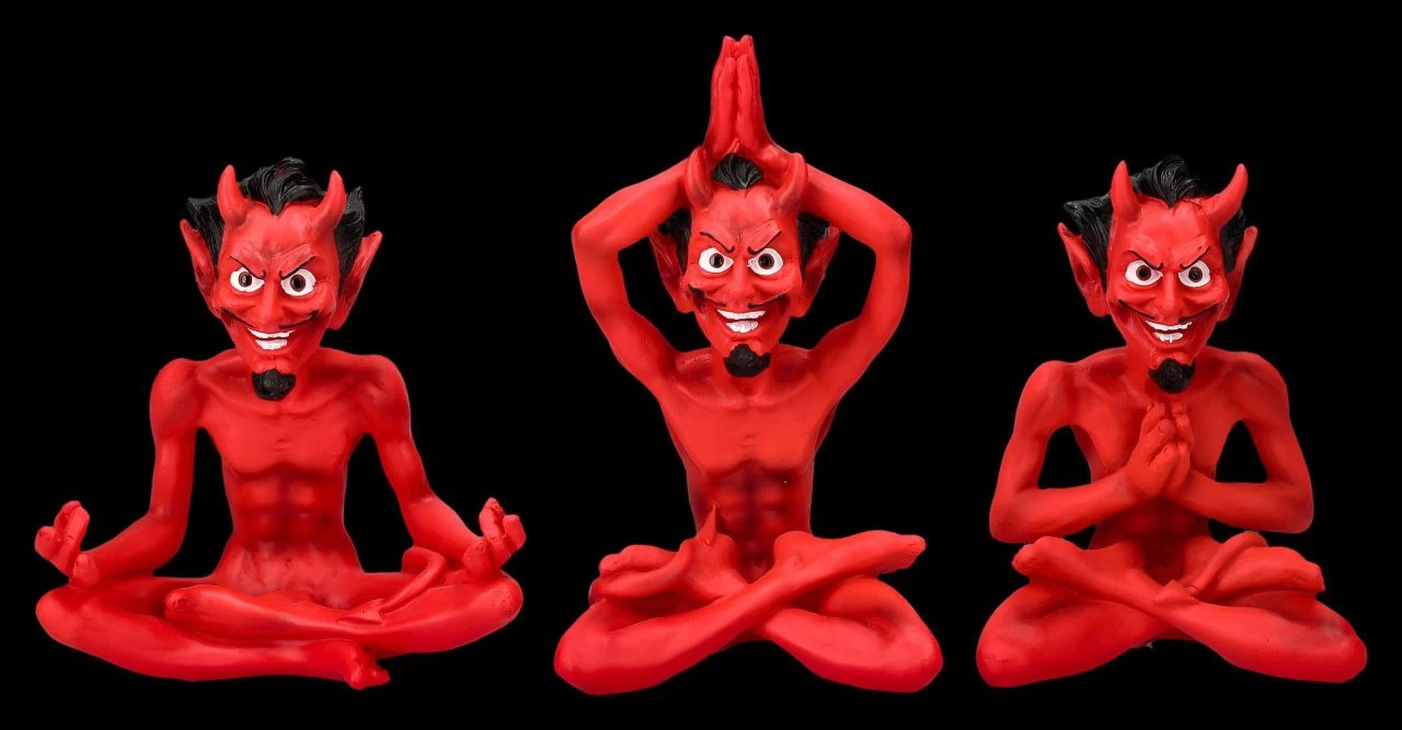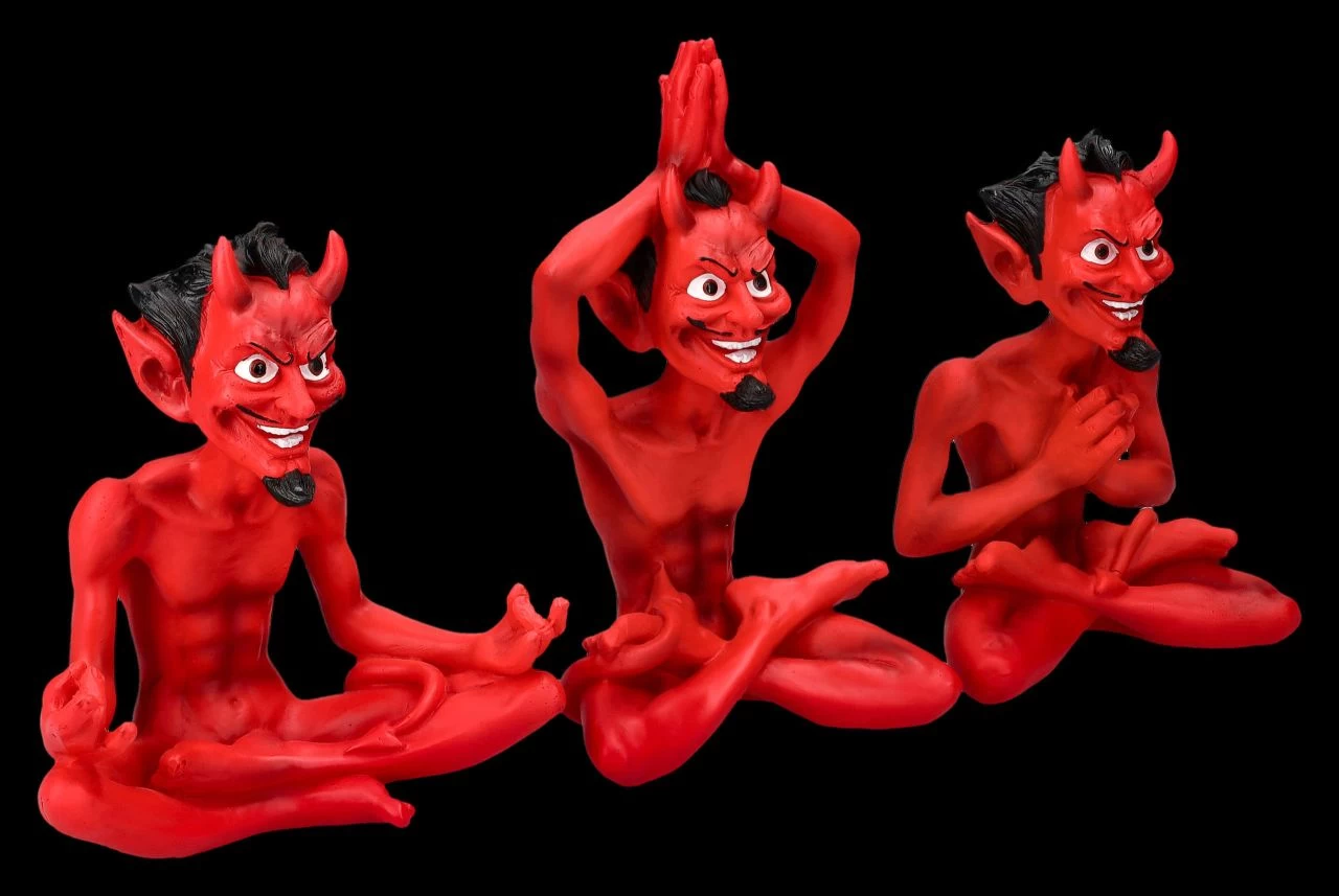 Tja – auch das vergnügte Leben in der Hölle kann ganz schön anstrengend sein. Also sollte auch Teufelchen achtsam sein und sich ab und zu beim Yoga entspannen – wie es diese drei Tefel so perfekt vormachen. Die 14 – 17,5 cm hohen, 10 – 13 cm breiten und 7,8 cm tiefen roten Teufel Figuren beim Yoga sind aus handbemaltem Kunststein (Polyresin) gefertigt und kommen im 3er Set. Sie sind eine witzige Deko – und das sicher nicht nur an Halloween oder wenn der Krampus mit dem Nikolaus mitkommt.