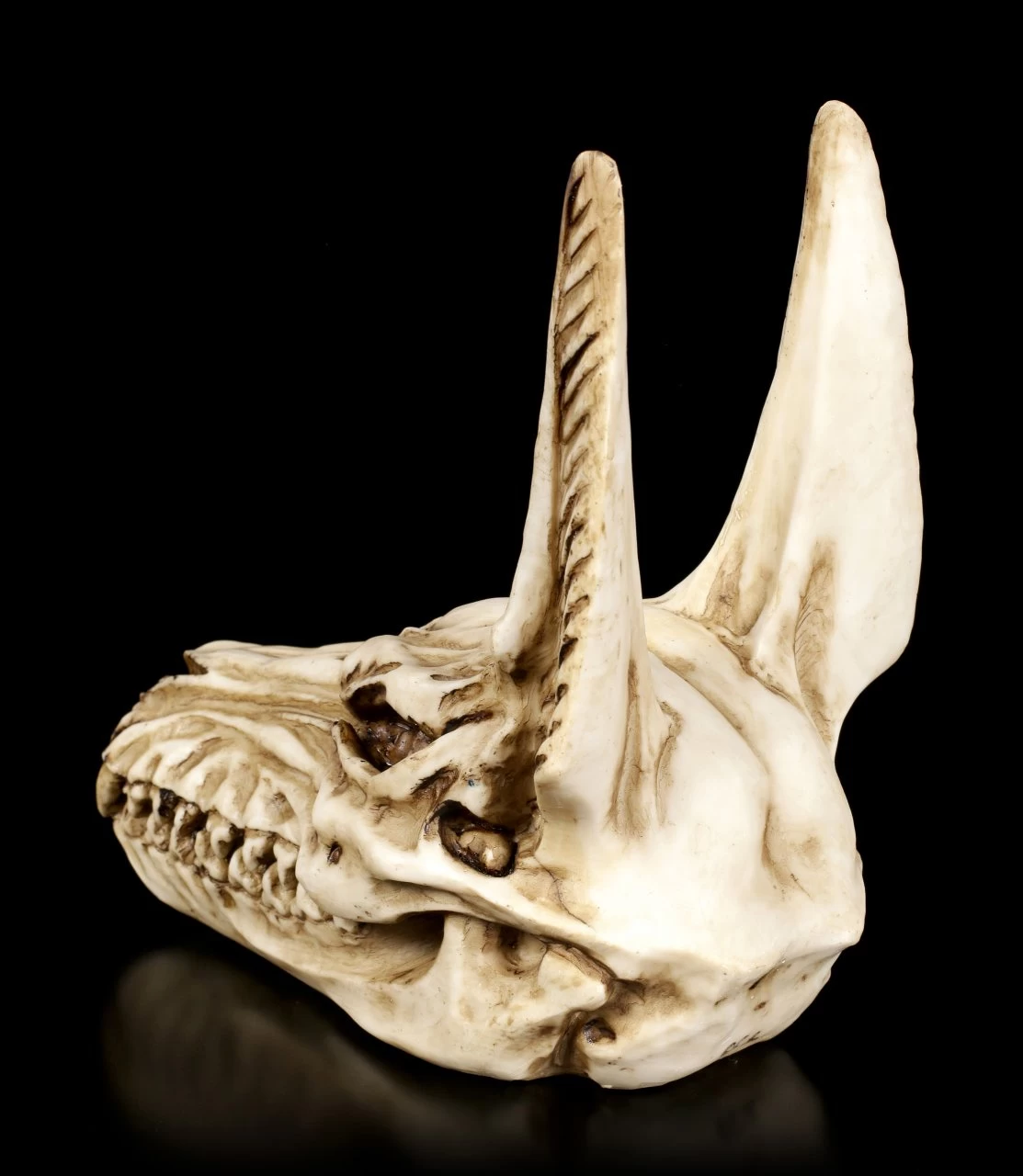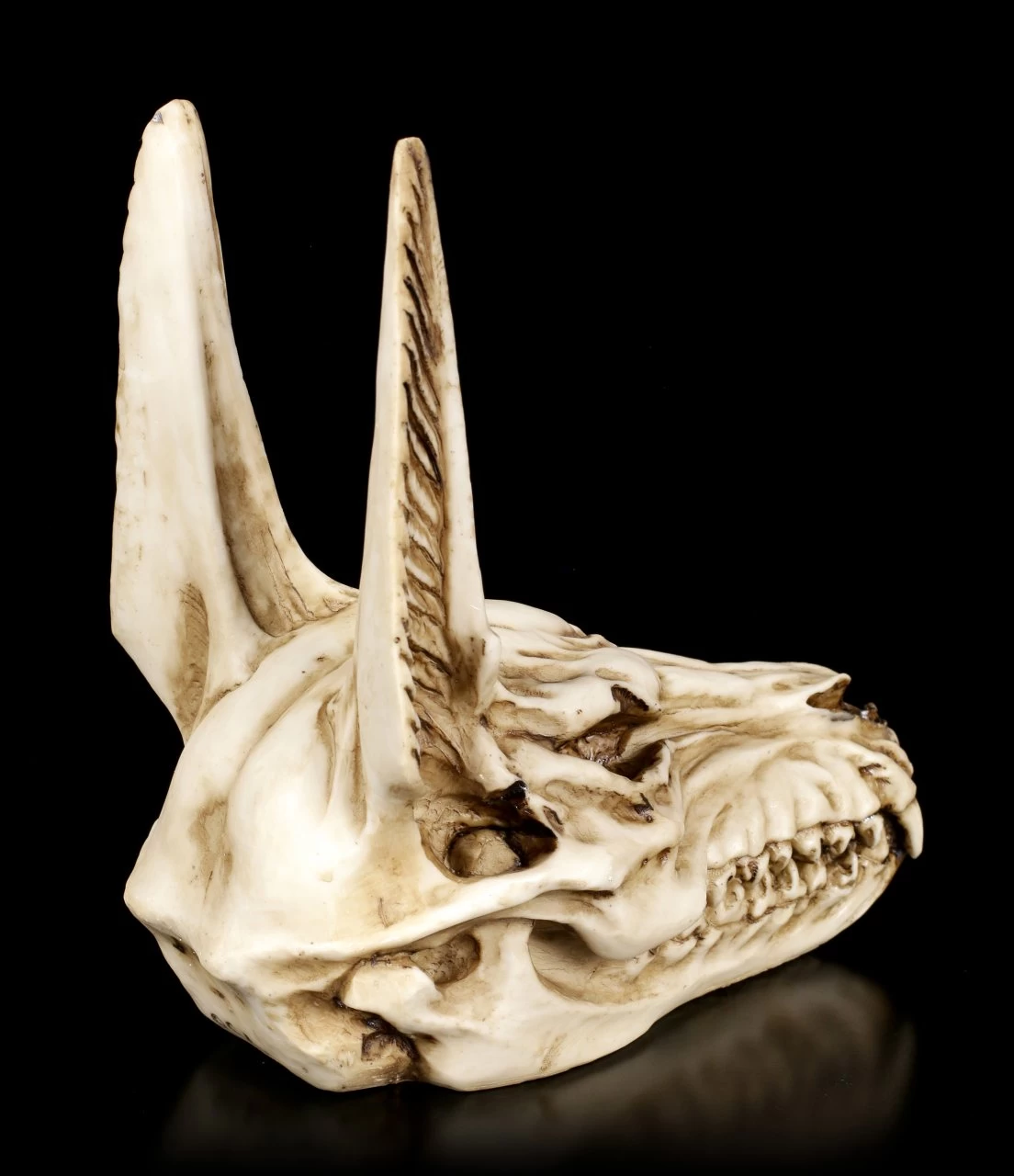 Der knochenfarbene Anubis Totenkopf wird Sie begeistern. Der Schädel aus handbemaltem Kunststein (Polyresin) zeigt Anubis, den altägyptischen Gott der Totenriten. Ist der grimmig aussehende Totenkopf nicht beeindruckend? Zudem ist er eine tolle Ergänzung Ihres Altars.