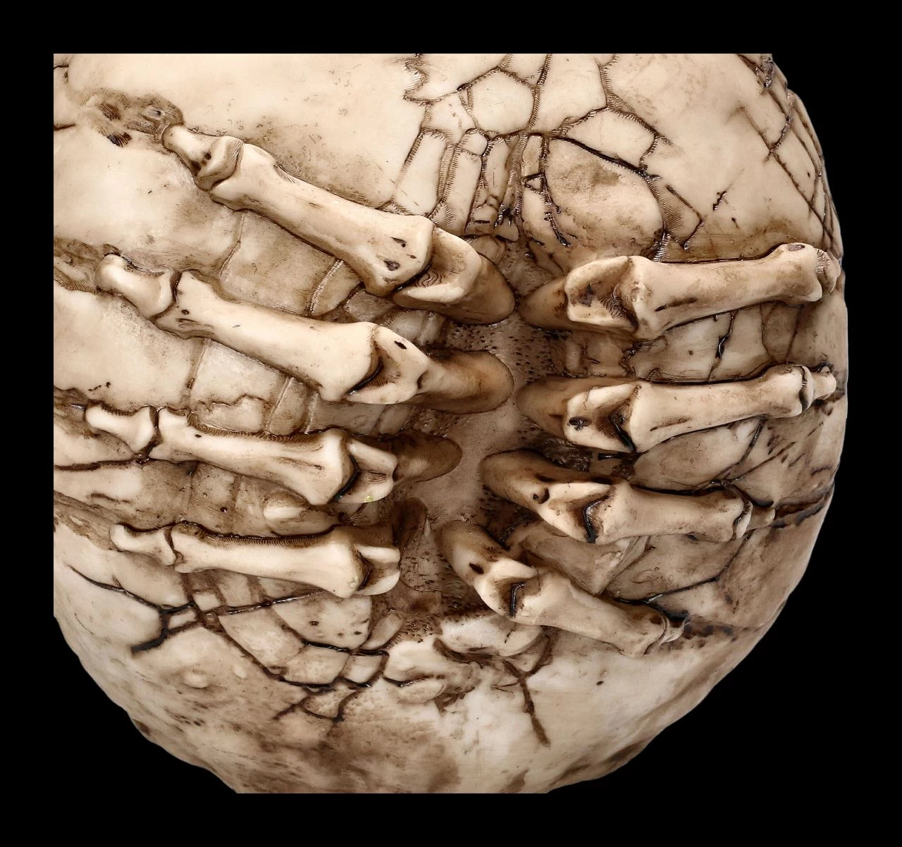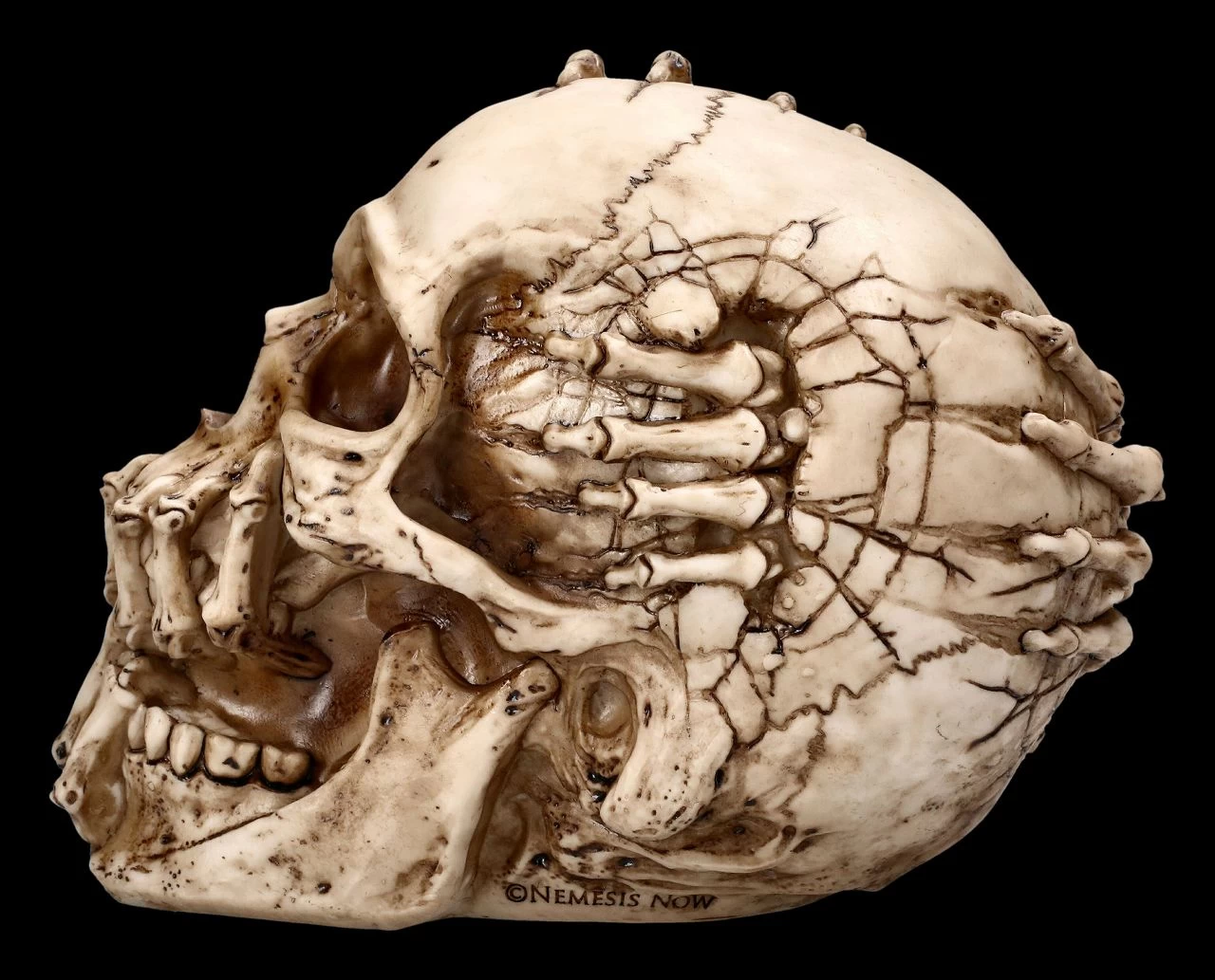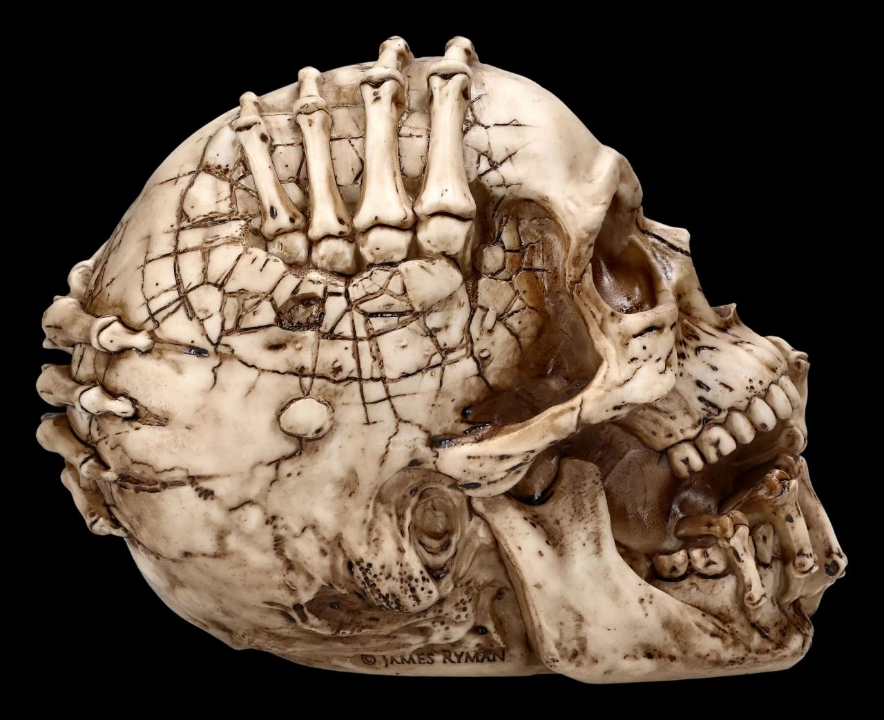 Wehe dem, der sich fürchtet. Wenn sich skelettierte Finger aus diversen Löchern des Schädels bohren, stellt sich die Frage, ob hier das Böse versucht auszubrechen. Der Totekopf wurde von dem berühmten Fantasy- und Horrorkünstler James Ryman gestaltet. Er ist aus detailliert handbemaltem Kunststein (Polyresin) und hat eine Höhe von 14 cm, eine Breite von 12 cm und eine Tiefe von 18 cm. Selbst für alle Horrorfans ist der Totenkopf ‚Breaking Out‘ von James Ryman ein außergewöhnliches Geschenk und wird inklusive einer Geschenkverpackung verschickt.