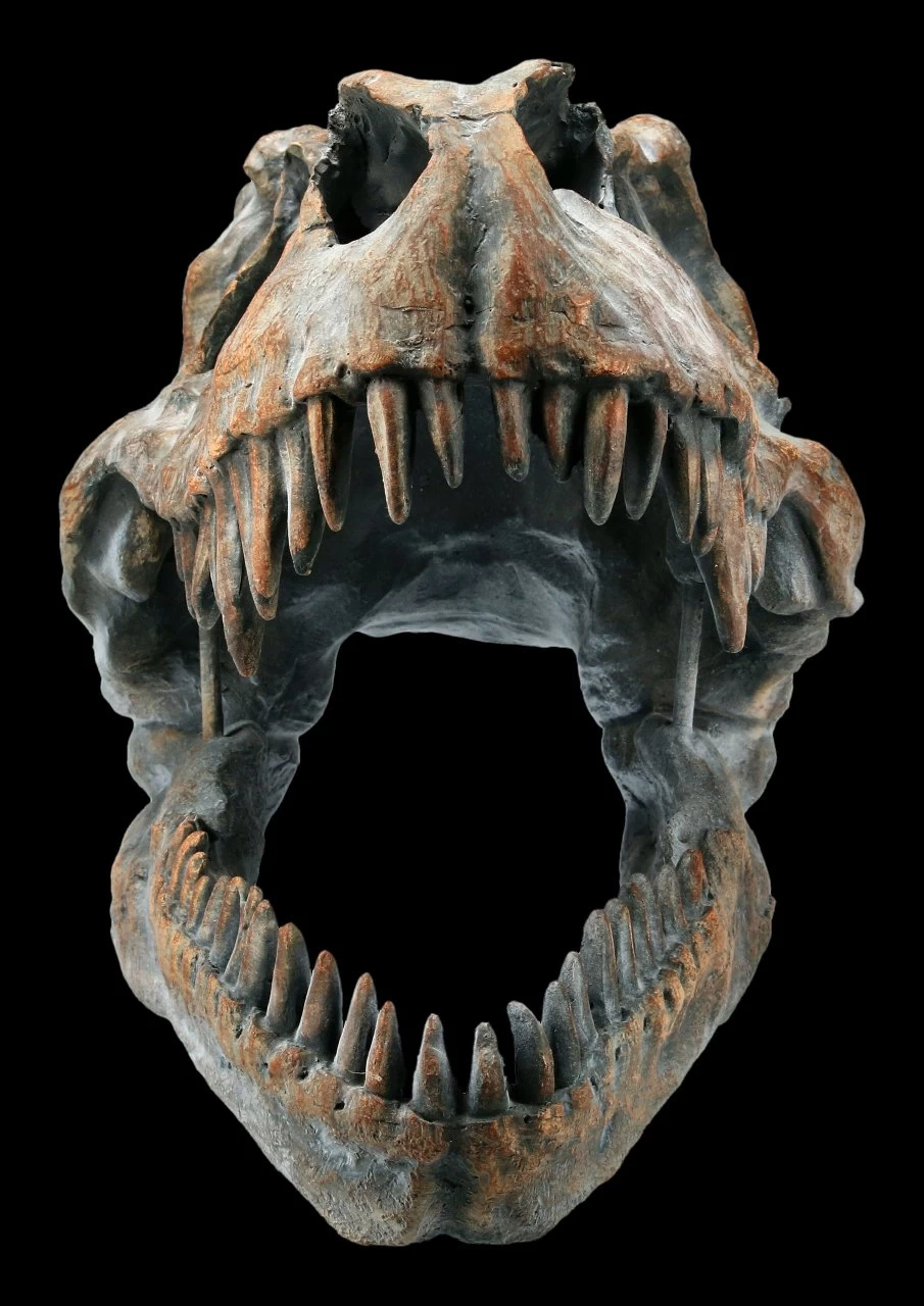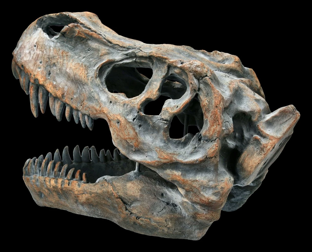 Der Tyrannosaurus Rex ist eine Berühmtheit unter den Dinosauriern. Diese Nachbildung seines Schädels wurde mit viel Liebe zum Detail ausgearbeitet und bringt ein Stück Geschichte in Ihre Wohnung.