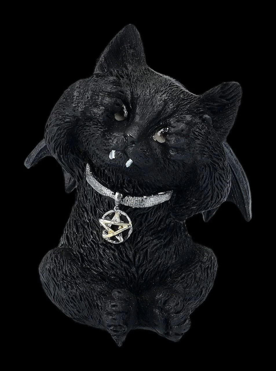Nun ja – ob das jetzt glaubwürdig ist, sollte jeder für sich entscheiden. Auf jeden Fall sind die drei Vampirkatzen, die demonstrativ zeigen, dass sie nichts Böses hören, sehen und schon gar nicht sagen möchten, sehr witzig anzusehen. Die ca. 8 – 9 cm hohen, je 7 cm breiten und 5 -6 cm tiefen Vampirkatzen aus handbemaltem Kunststein (Polyresin) sind sicher das Highlight auf jedem Schreibtisch und damit auch ein vielsagendes Geschenk.