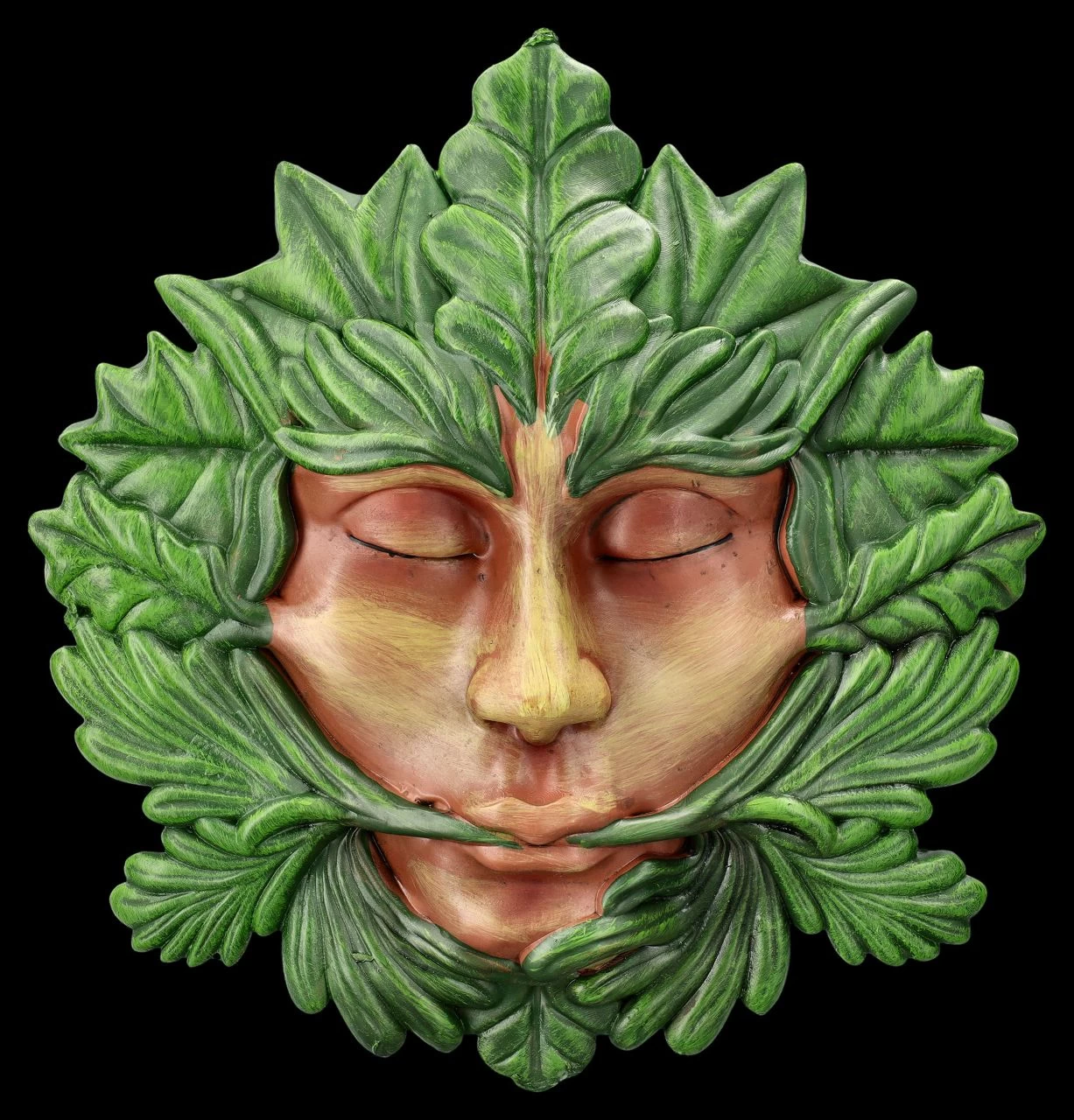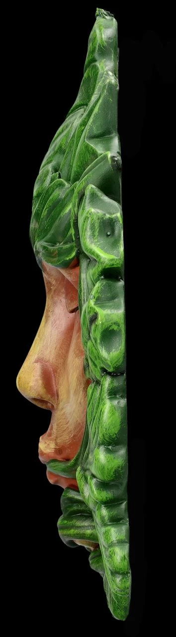 Auch bei der Meditation innerlich raus in die Natur und tief einatmen. Dazu dieses wunderbare Wandrelief mit dem Greenman so an die Wand hängen, dass man schon beim Anblick automatisch versucht wird, genießerisch die Natur zu atmen. Das Wandrelief zeigt das meditative Gesicht des Greenman, der auch als ‚Gott mit den Blättern‘ bezeichnet wird. Als spirituelles Symbol, das die Harmonie von Geist und Natur verkörpert, ist dieses Wandrelief auch ein wunderbares Geschenk. Das 19,5 cm hohe, 18,5 cm breite und 3,5 cm tiefe plastische Wandrelief zum Hängen ist detailreich aus Kunststein (Polyresin) gegossen und wurde von Hand bemalt.
