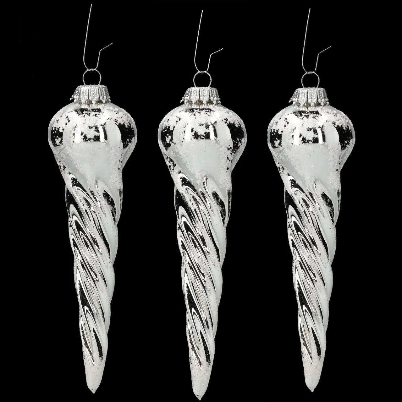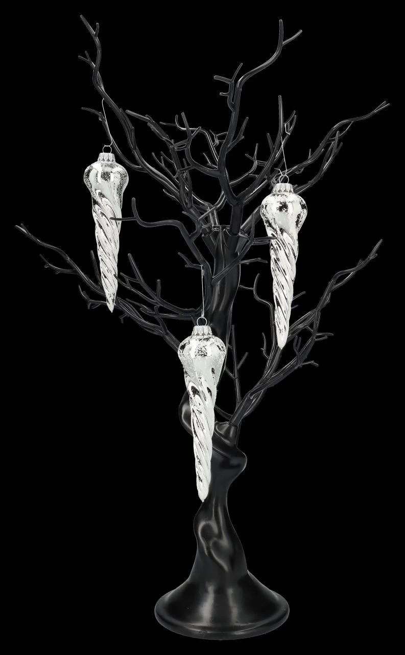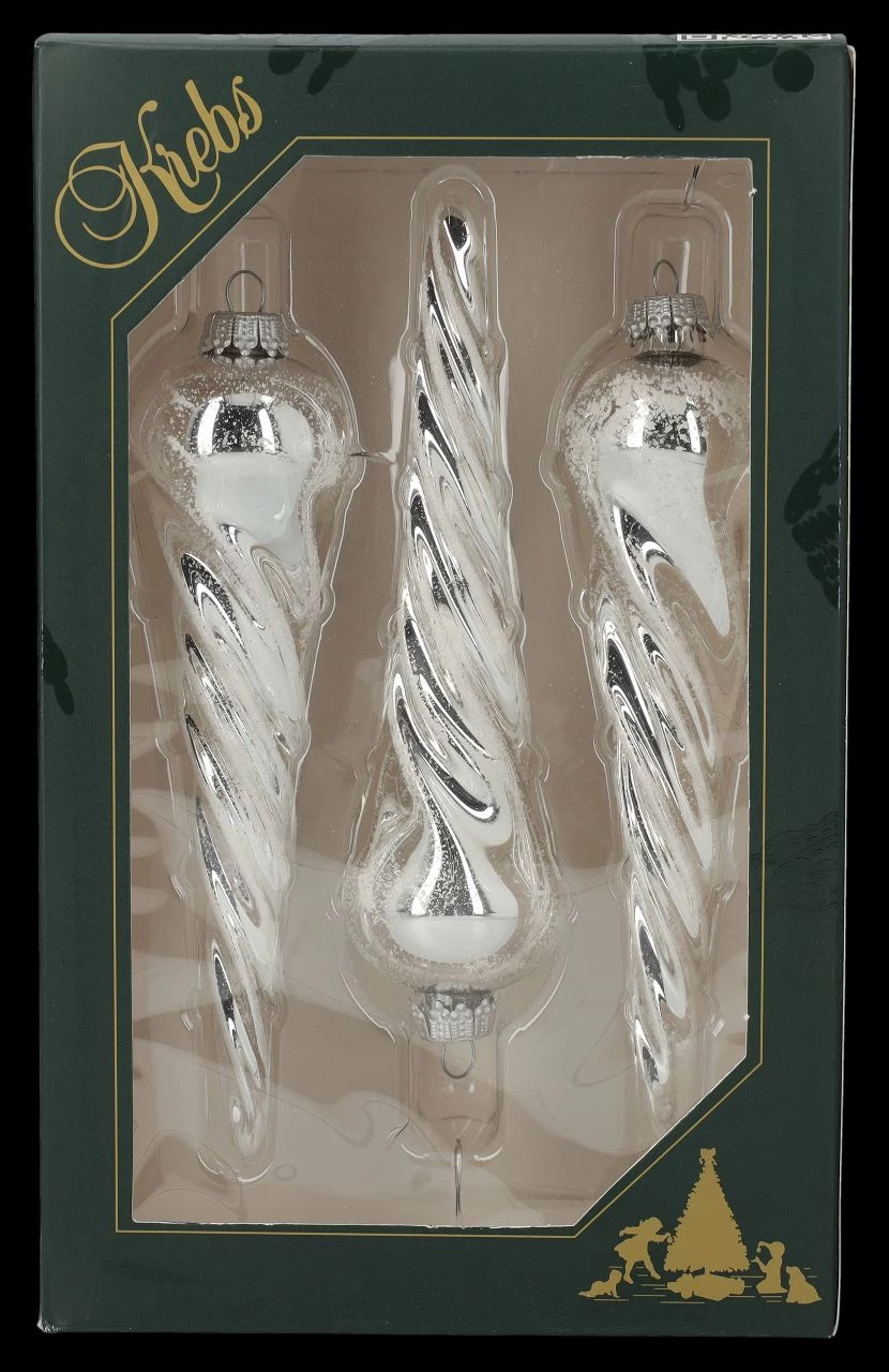 Drei silbrig glitzernde Einhorn-Hörner sind in diesem zauberhaften Set aus mundgeblasenem Glas. Das Weihnachtskugel-3er Set ist sorgfältig von Hand bemalt. Die Einhornhörner sind jeweils beeindruckende 16 cm hoch, je 4,5 cm breit und je 4,5 cm tief. Dieses wunderbare Glaskugel-Set mit den drei Einhorn-Hörnern ist auch ein zauberhaftes Geschenk. Es ist nur für den Innenbereich geeignet. Achten Sie bitte darauf, dass die Glaskugeln zerbrechlich und nicht als Spielzeug für Kinder geeignet sind. Weitere faszinierende Glaskugeln für Ihren Weihnachtsbaum finden Sie übrigens in unserem Shop.