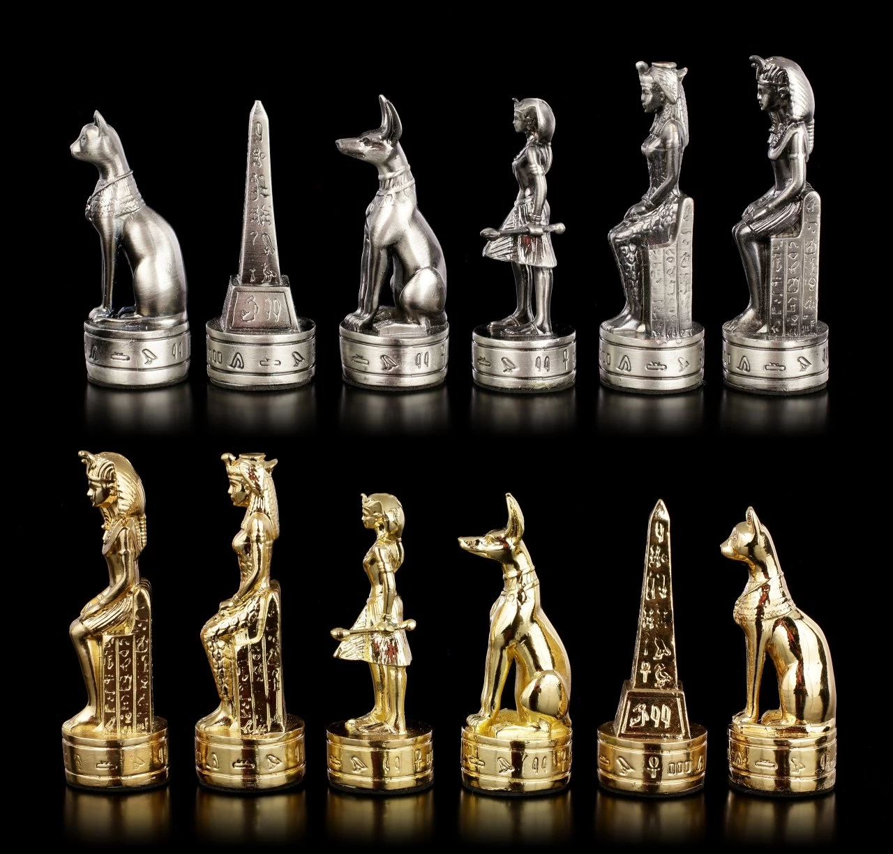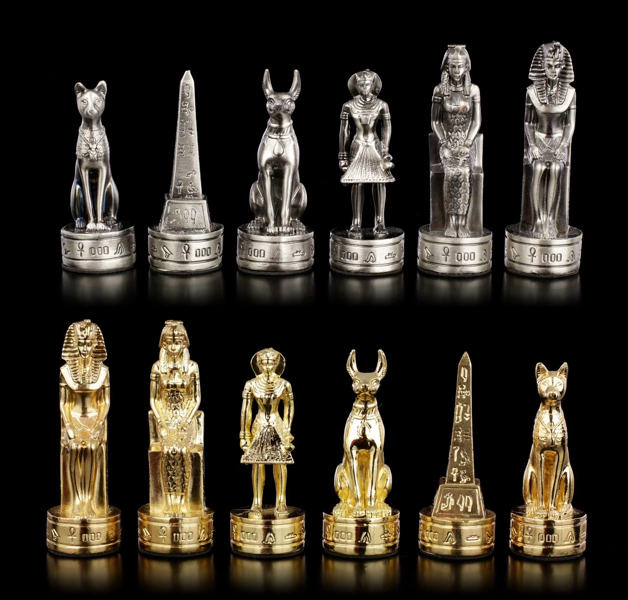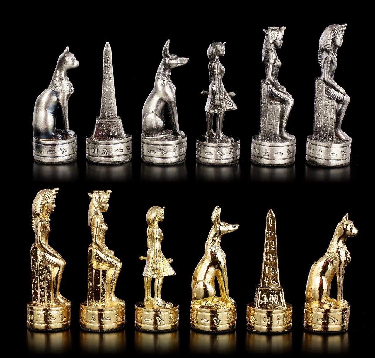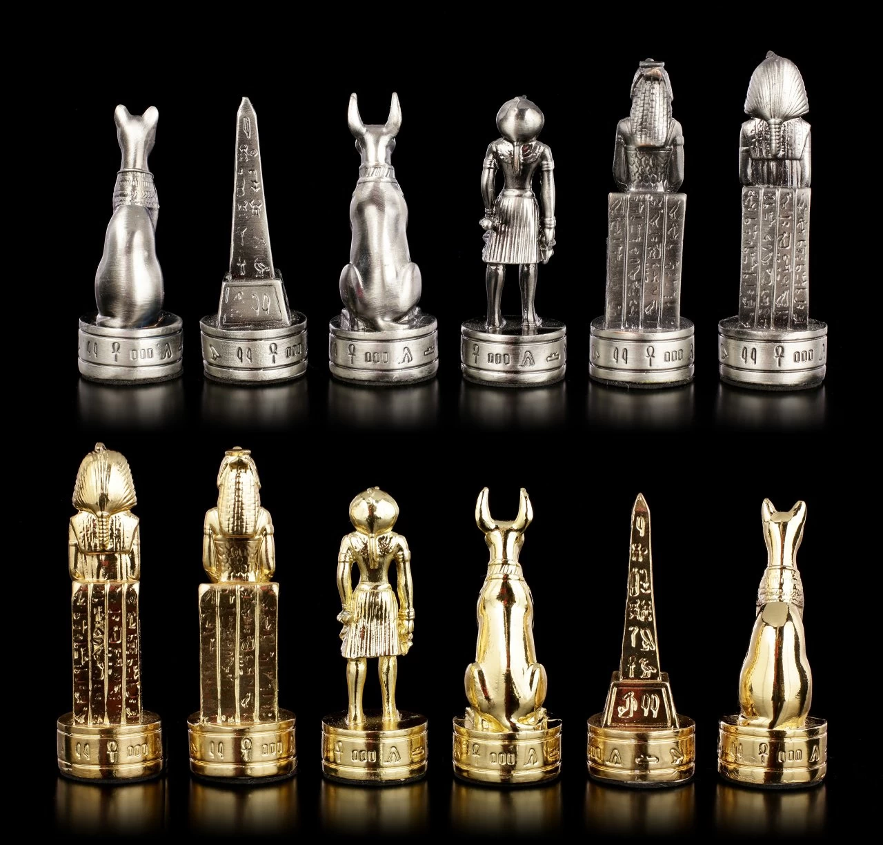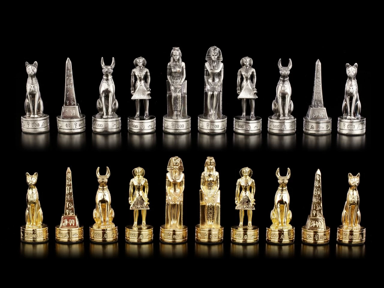 Detailreiche Zinn Schachfiguren im Ägypten Look
