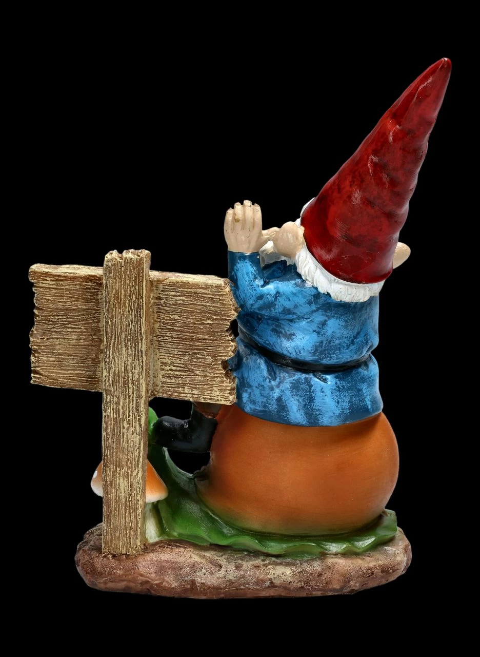 Ist hier die Haltestelle für die Schneckenpost? Auf dem Schild steht jedenfalls Gnome Sweet Gnome – also warte ich einfach mal ein bisschen, ob nicht doch noch jemand zusteigen möchte, denkt sich dieser lustige kleine Zwerg mit seinem langen weißen Bart. Auf einer Schnecke sitzend winkt er den anderen zu. Diese lustige Zwergenfigur mit dem roten Hut und blauer Jacke ist aus liebevoll handbemaltem Kunststein (Polyresin) gefertigt. Der Zwerg ist 12,5 cm hoch, 19,0 cm breit und 8,0 cm tief und freut sich über jeden Mitreisenden..